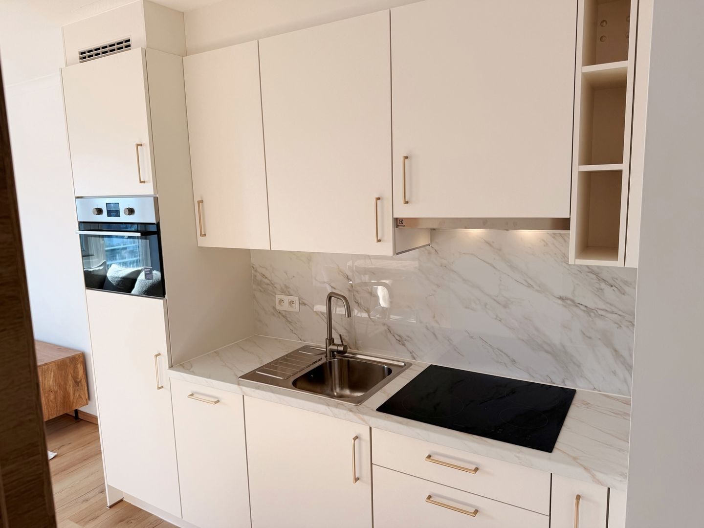Résidence OLD FISHER : au 5? étage, superbe appartement entièrement rénové et meublé avec goût, alliant style, confort et emplacement idéal à Westende-bains. Le séjour ensoleillé bénéficie d’une magnifique lumière naturelle l’après-midi et offre une vue dégagée sur les charmantes villas côtières ainsi que sur la pittoresque place des Portiques. La cuisine ouverte, entièrement équipée avec des appareils modernes, est parfaite pour ceux qui aiment cuisiner dans une atmosphère conviviale. La salle de bain, rénovée avec soin, dispose d’une douche élégante, d’un meuble lavabo avec miroir éclairé et d’un raccordement pour machine à laver. La chambre, située à l’arrière, garantit calme et tranquillité pour des nuits paisibles. Dès l’entrée, une armoire de rangement pratique fait office de vestiaire. La toilette est séparée. Tout a été refait : châssis de fenêtres, sols, électricité, avec une conformité électrique selon les normes en vigeur. Atout supplémentaire : quatre emplacements de parking communs sont à disposition et son exclusivement réservés aux propriétaires de l’immeuble.