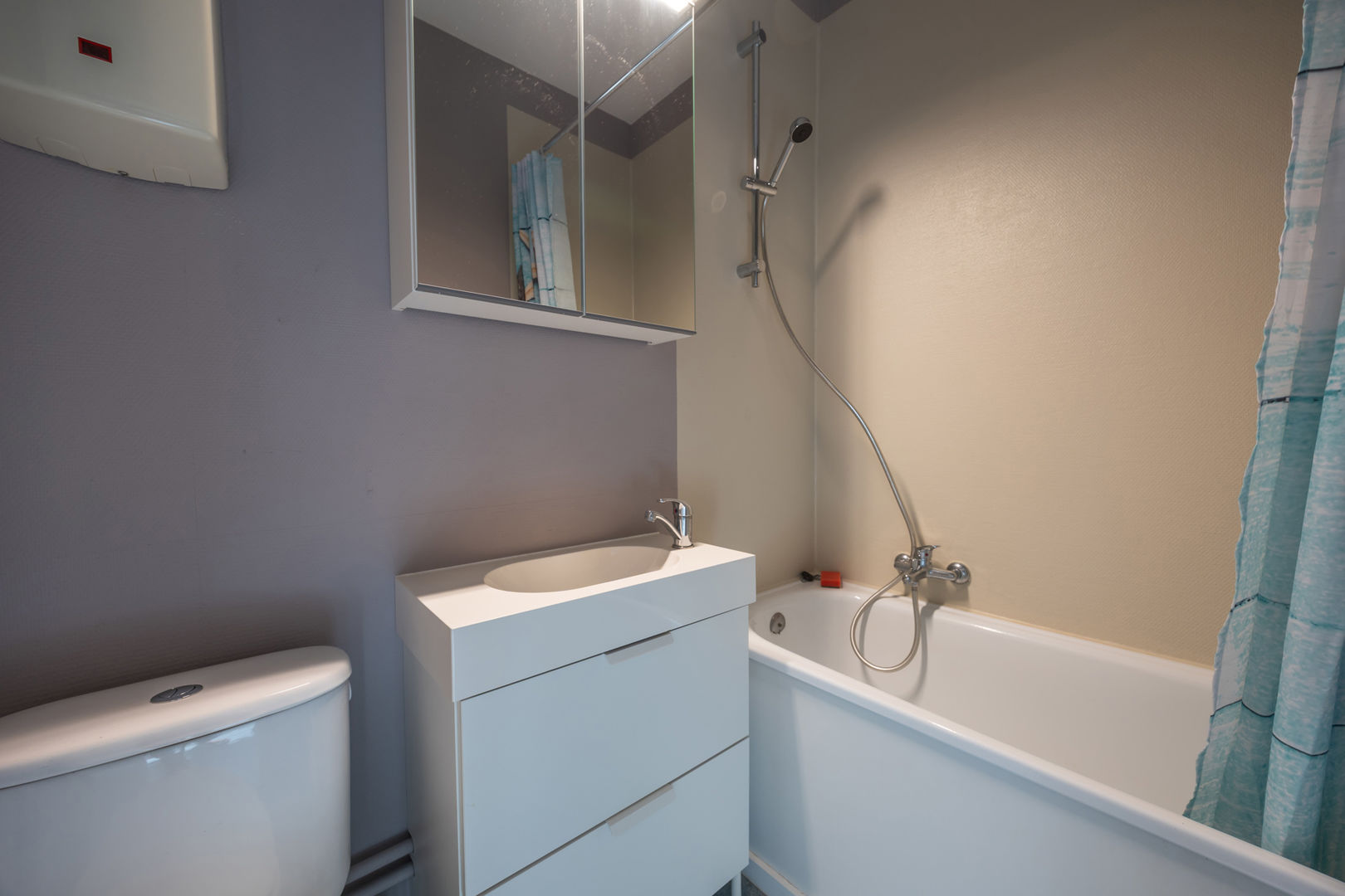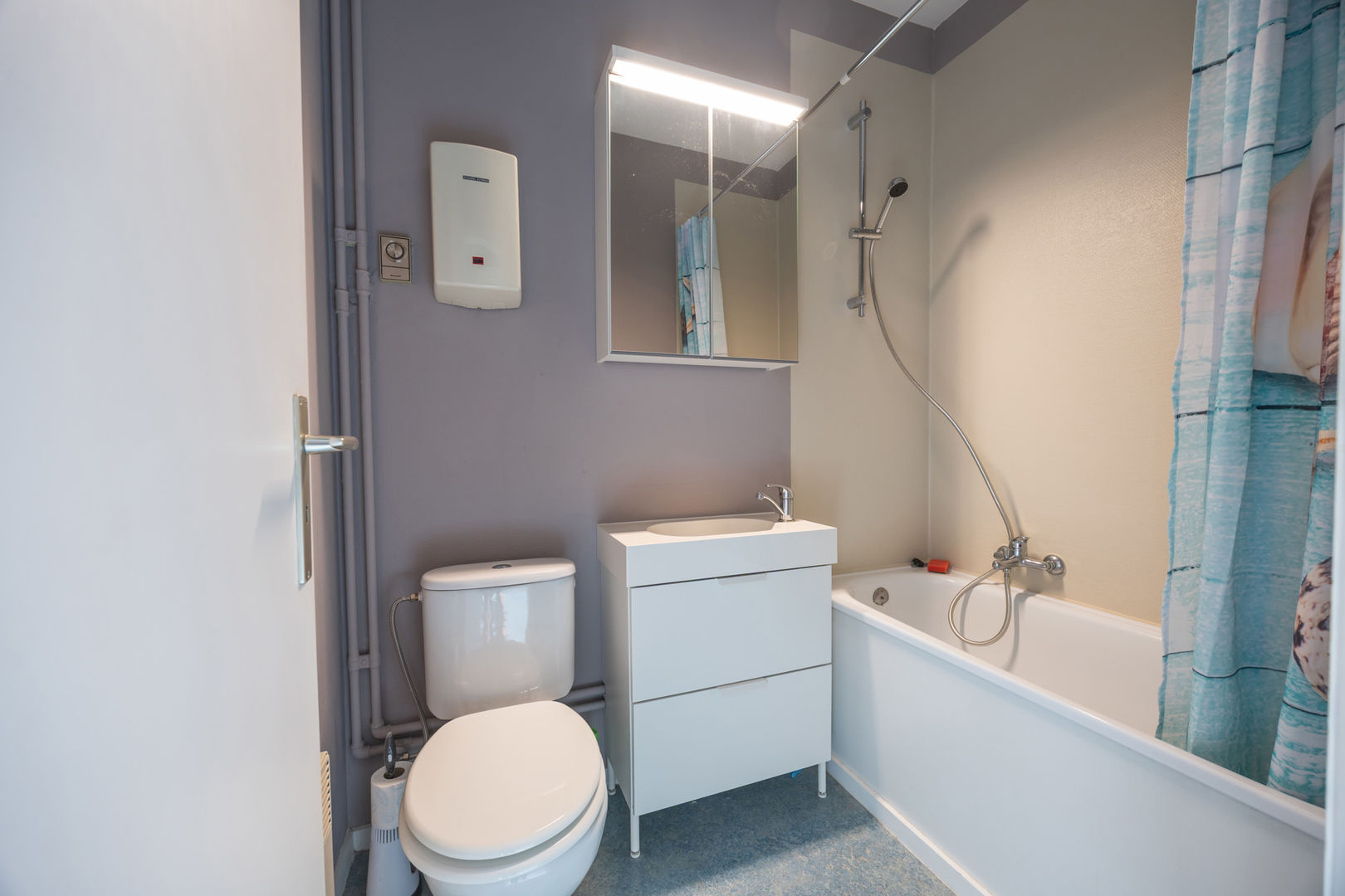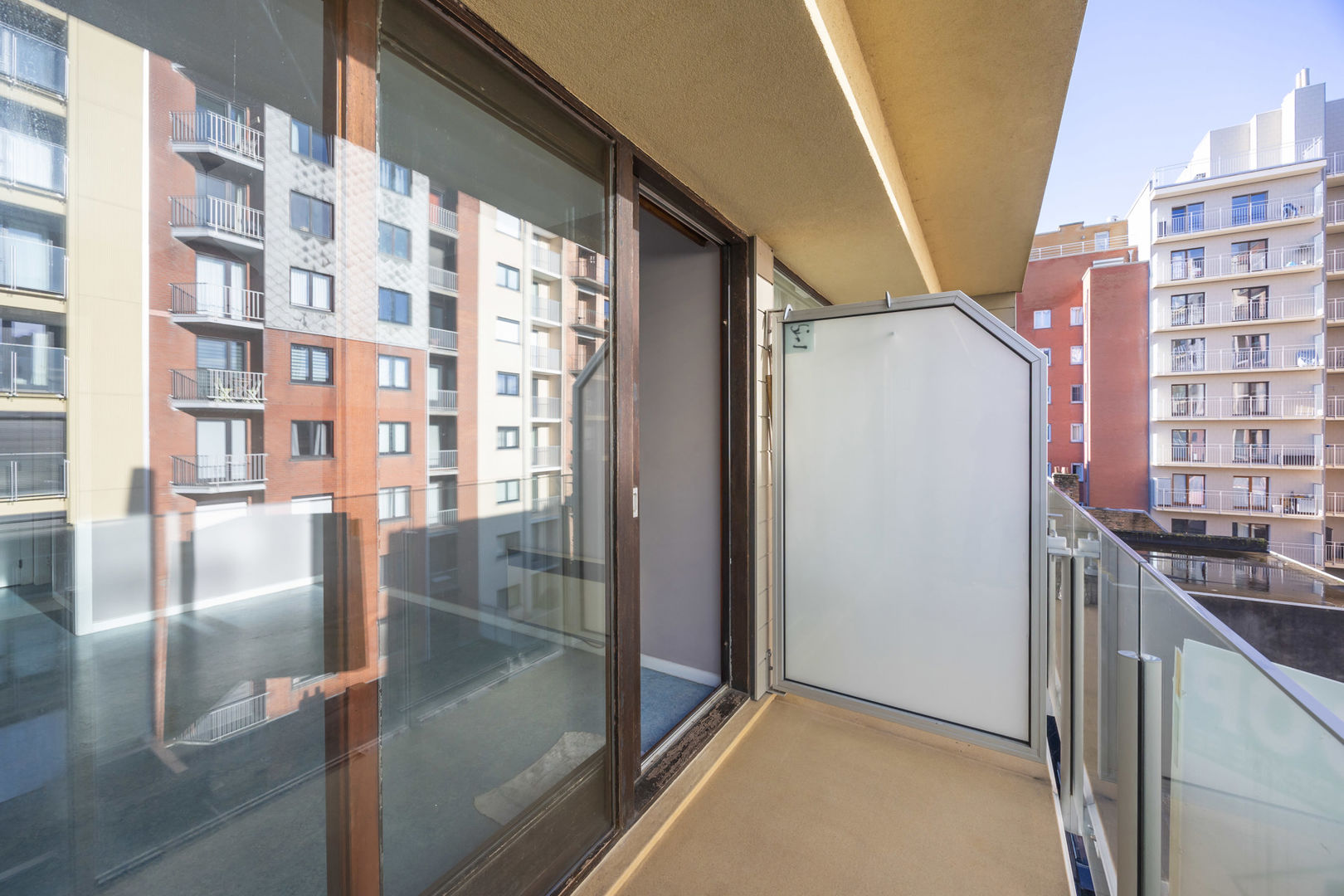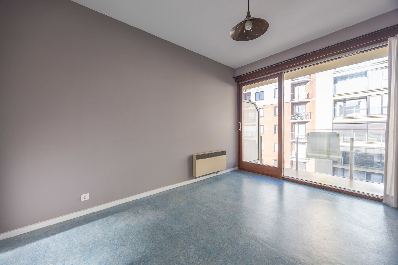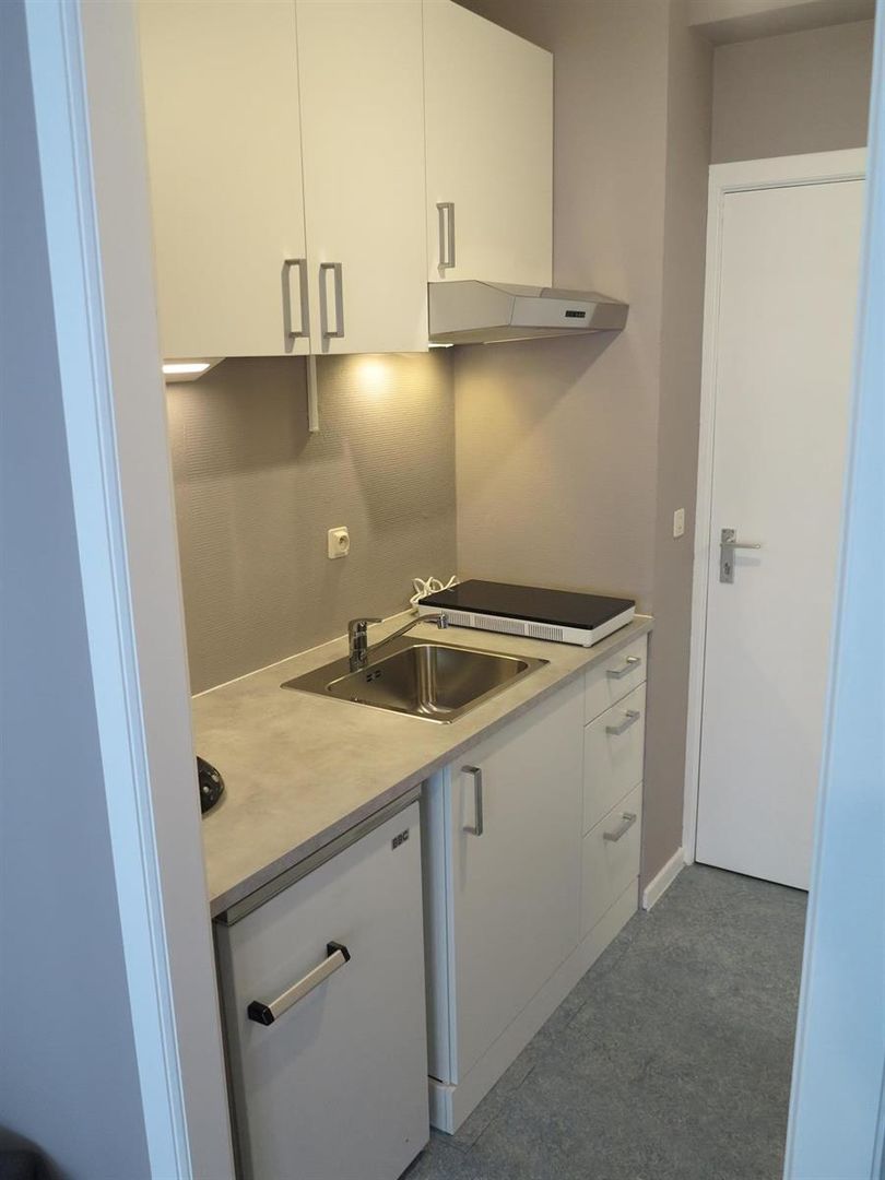Résidence WESTEND PALACE C1 : dans le centre, au 4ième étage à l'arrière de la résidence, petit studio (18m²) non-meublé, comprenant: hall d'entrée avec kitchenette, living avec terrasse et salle de bain avec baignoire et toilette. Chauffage électrique individuel. Installation électrique conform au RGIE. Résidence avec piscine couverte et jardin privé.