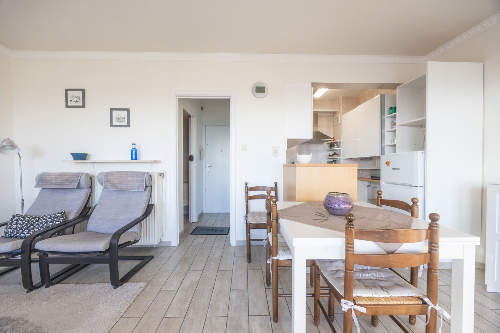 Résidence PANORAMIC B : au 3ième étage avec vue une très belle vue sur l'arrière pays, grand studio meublé, comprenant : un hall d'entrée avec vestiaire, large séjour avec grande terrasse ensoleillée, cuisine ouverte, salle de bains avec douche et toilette et cave privée au sous-sol. Façade et terrasse rénovées. Double vitrages et chauffage central.