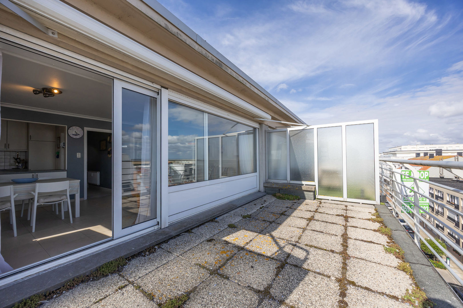 Residentie SUN VALLEY : Instapklaar dakappartement met 3 slaapkamers en zonnig terras op de 5de verdieping. Op zoek naar een ruim en lichtrijk dakappartement met een groot terras? Dan is dit aangename appartement op de 5de verdieping zeker een bezoek waard. Het appartement beschikt over een ruime leefruimte met veel natuurlijk licht en een gezellige zithoek, aansluitend op de eetplaats. Vanuit de leefruimte heeft u directe toegang tot het ruime, zonnige terras, waar u in alle rust kan genieten van de buitenlucht en het open zicht – ideaal om te ontspannen of gasten te ontvangen. De functionele keuken is praktisch ingericht en staat in verbinding met de leefruimte. Verder telt het appartement drie volwaardige slaapkamers waarvan een met terras, waardoor het perfect geschikt is als gezinswoning, tweede verblijf of investering. De badkamer is uitgerust met een ligbad en lavabomeubel, terwijl het aparte toilet extra comfort biedt. Dankzij de ligging op de bovenste verdieping geniet u van privacy en rust. De indeling is logisch en comfortabel, met voldoende bergruimte en een aangename sfeer doorheen het hele appartement. Residentie met fietsenberging en gelegen dichtbij de zeedijk, handelszaken en openbaar vervoer. Achtergevel in 2025 gerenoveerd en geïsoleerd.