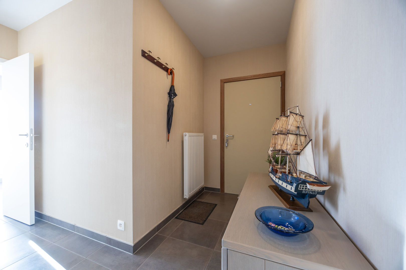 Verder zijn er twee volwaardige slaapkamers, een moderne badkamer met douche en lavabomeubel, en een apart gastentoilet. De inkomhal biedt extra opbergruimte en zorgt voor een vlotte circulatie in het appartement. Er is ook een private kelderberging inbegrepen.
